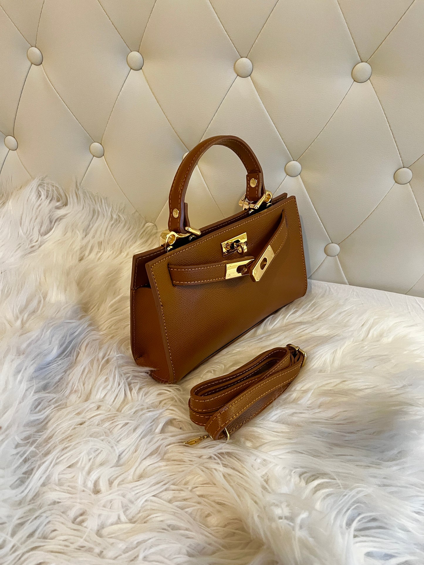 Calfskin baguette bag with chain detail and leather handle, with removable adjustable leather shoulder strap. Lined and internal compartment with one pocket. Zipper closure. Material: 100% Calfskin. Metal accessories: gold finish. Measures: 17 x 26 x 8 cm.